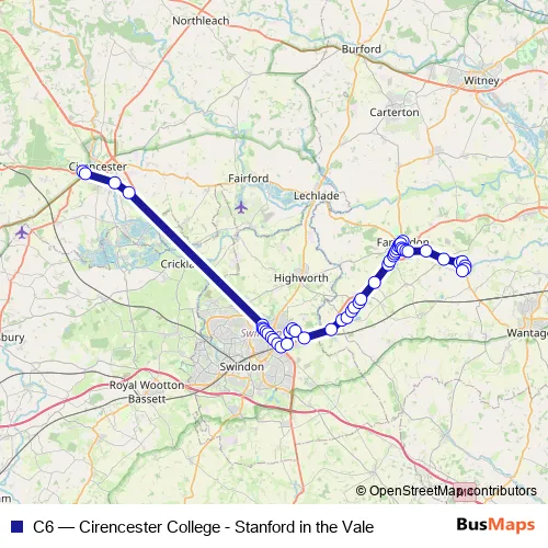 Click here to view the nearest C6 - Cirencester College - Stanford in the Vale bus stop.