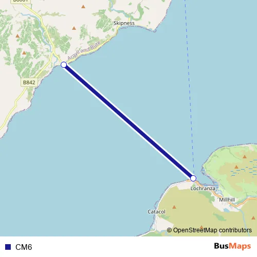 The first stop of the CM6 ferry route is Lochranza Arran Ferry Terminal and the last stop is Tarbert (Loch Fyne) Ferry Terminal. CM6 is operational during everyday.