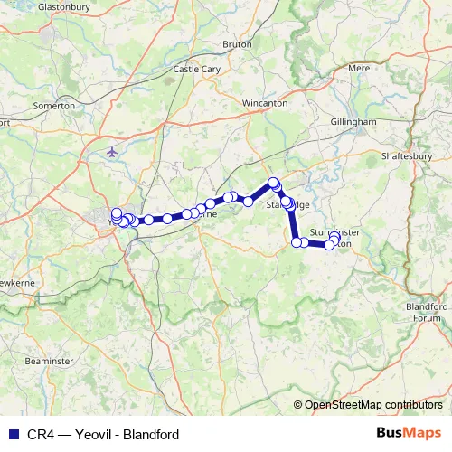 Click here to view the nearest CR4 - Yeovil - Blandford bus stop.
