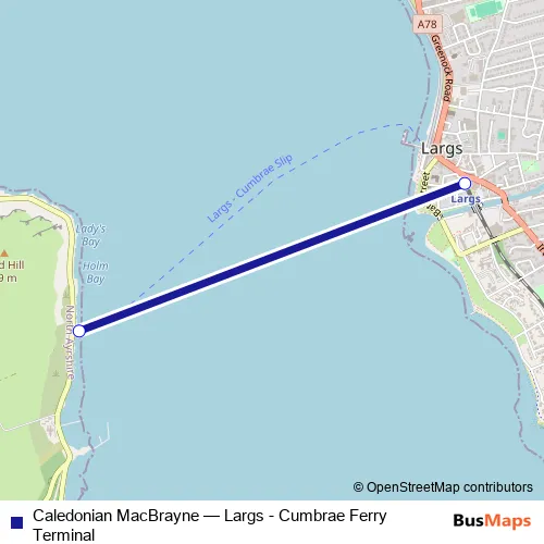 See why over 2 million users trust and consider busmaps.com as the best public transport website. busmaps gives you Largs Ferries suggested routes, real-time bus tracker, line route maps in Largs, and helps to find the closest Caledonian MacBrayne ferry stops near you. No internet available? Download an offline PDF map and bus schedule for the Caledonian MacBrayne ferry to take on your trip.
