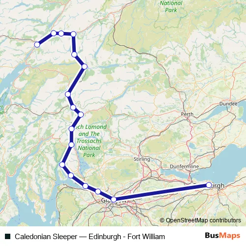 The first stop of the Caledonian Sleeper rail route is Fort William and the last stop is Edinburgh. Caledonian Sleeper (Edinburgh - Fort William) is operational during on weekends.