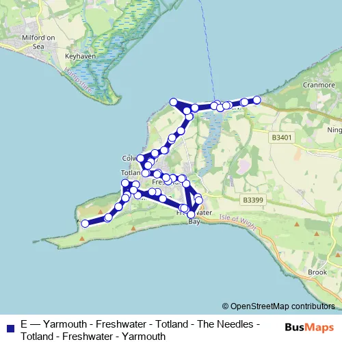 Click here to view the nearest E - Yarmouth - Freshwater - Totland - The Needles - Totland - Freshwater - Yarmouth bus stop.