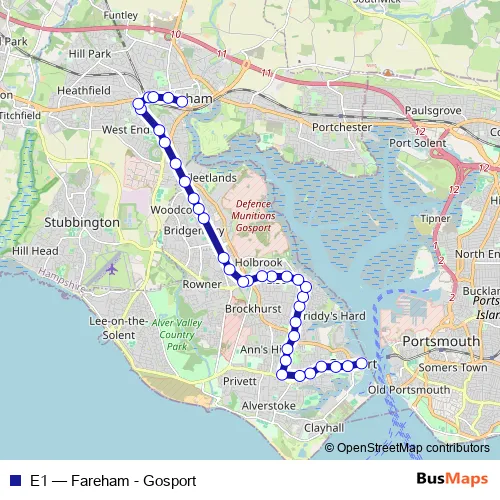 Click here to view the nearest E1 - Fareham - Gosport bus stop.