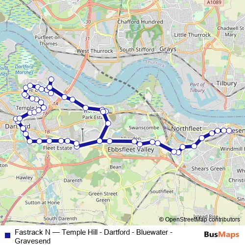 Click here to view the nearest Fastrack N - Temple Hill - Dartford - Bluewater - Gravesend bus stop.