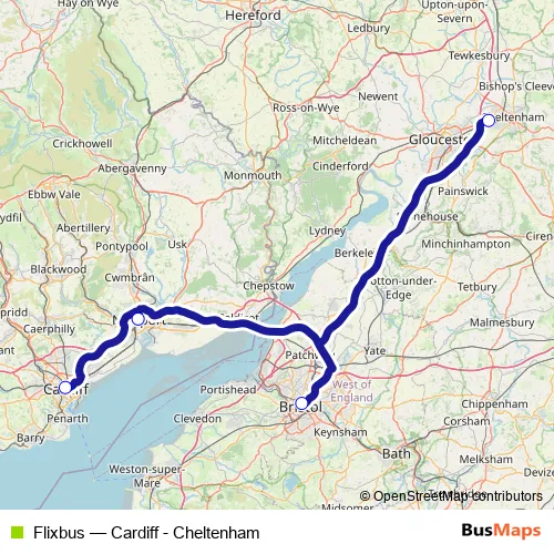 Bus Flixbus - Cardiff - Cheltenham in Gloucester: Stops & Timetable