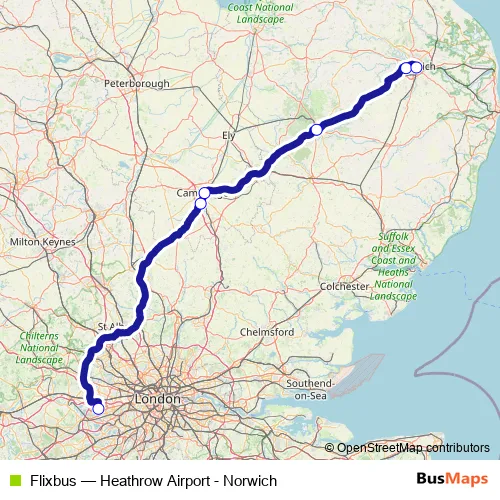 Click here to view the nearest Flixbus - Heathrow Airport - Norwich bus stop.