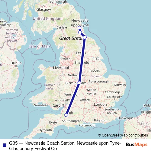 Click here to view the nearest G35 - Newcastle Coach Station, Newcastle upon Tyne-Glastonbury Festival Co bus stop.
