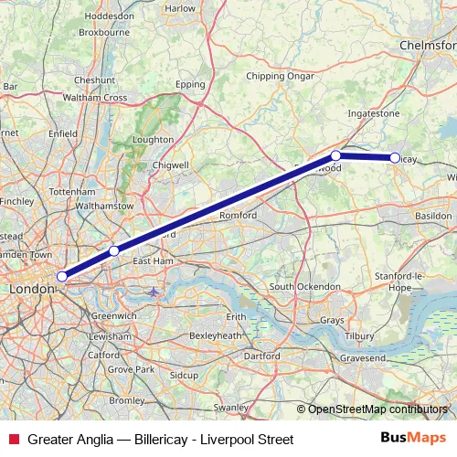 Click here to view the nearest Greater Anglia - Billericay - Liverpool Street bus stop.