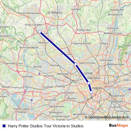 See why over 2 million users trust and consider busmaps.com as the best public transport website. busmaps gives you London Buses suggested routes, real-time bus tracker, line route maps in London, and helps to find the closest Harry Potter Studios Tour Victoria to Studios bus stops near you. No internet available? Download an offline PDF map and bus schedule for the Harry Potter Studios Tour Victoria to Studios bus to take on your trip.