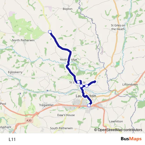 The first stop of the L11 bus route is Launceston College and the last stop is Langdon Cross, The Countryman. L11 is operational during on weekdays.