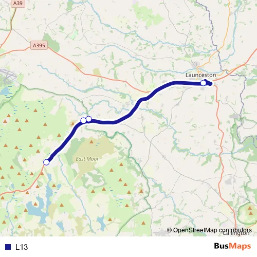 The first stop of the L13 bus route is Launceston College and the last stop is