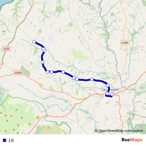 The first stop of the L9 bus route is Launceston College and the last stop is