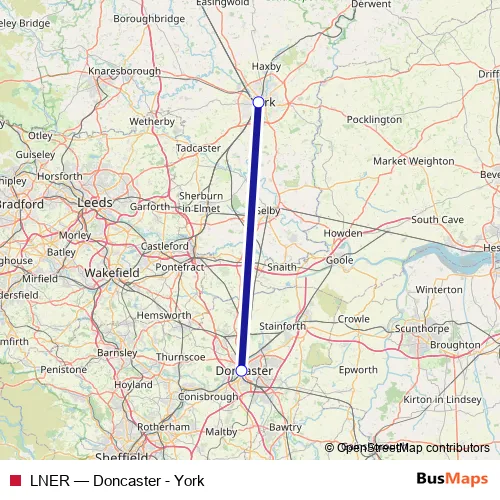 The first stop of the LNER rail route is York and the last stop is Doncaster. LNER (Doncaster - York) is operational during on weekends.