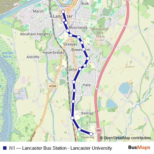 Click here to view the nearest N1 - Lancaster Bus Station - Lancaster University bus stop.