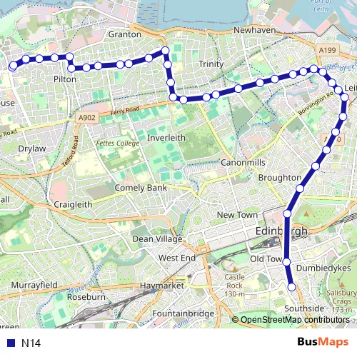See why over 2 million users trust and consider busmaps.com as the best public transport website. busmaps gives you Edinburgh Buses suggested routes, real-time bus tracker, line route maps in Edinburgh, and helps to find the closest N14 bus stops near you. No internet available? Download an offline PDF map and bus schedule for the N14 bus to take on your trip.