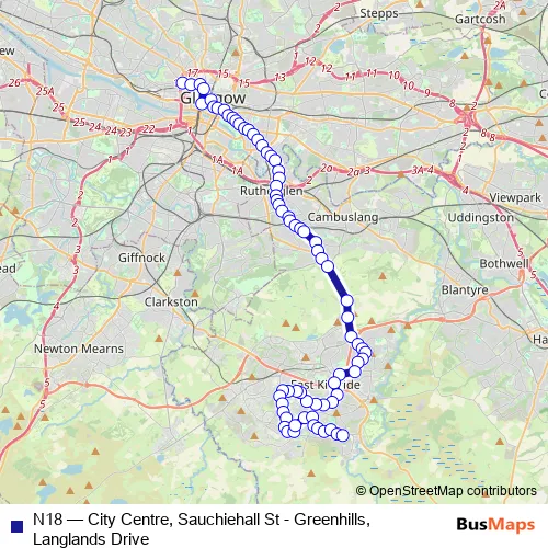 Click here to view the nearest N18 - City Centre, Sauchiehall St - Greenhills, Langlands Drive bus stop.
