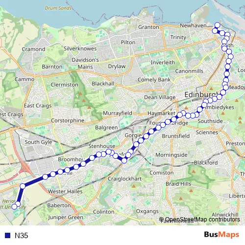 See why over 2 million users trust and consider busmaps.com as the best public transport website. busmaps gives you Edinburgh Buses suggested routes, real-time bus tracker, line route maps in Edinburgh, and helps to find the closest N35 bus stops near you. No internet available? Download an offline PDF map and bus schedule for the N35 bus to take on your trip.