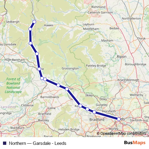 See why over 2 million users trust and consider busmaps.com as the best public transport website. busmaps gives you Leeds Rail Services suggested routes, real-time bus tracker, line route maps in Leeds, and helps to find the closest Northern rail stops near you. No internet available? Download an offline PDF map and bus schedule for the Northern rail to take on your trip.
