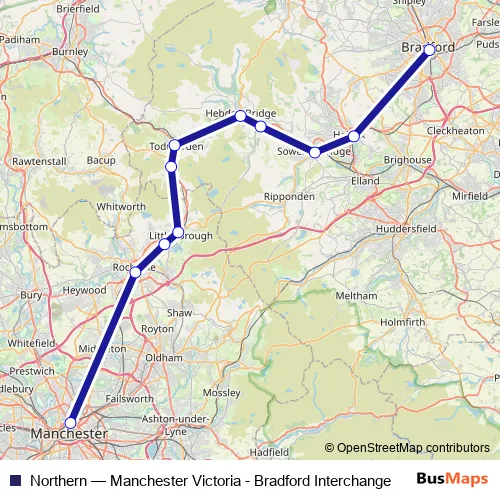 Click here to view the nearest Northern - Manchester Victoria - Bradford Interchange bus stop.