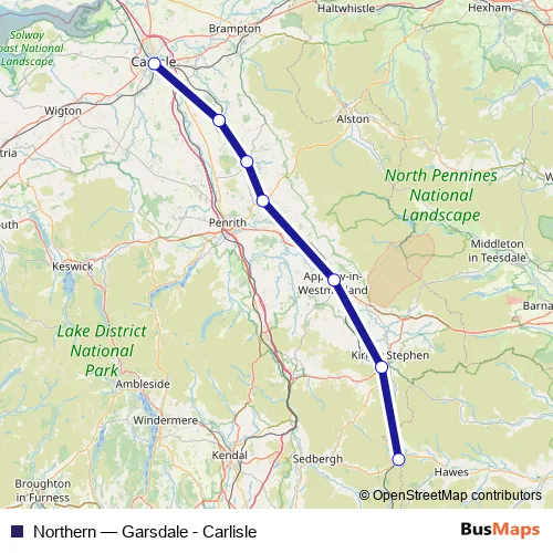 The first stop of the Northern bus route is Garsdale and the last stop is