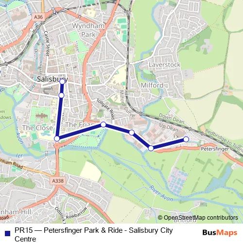 Click here to view the nearest PR15 - Petersfinger Park & Ride - Salisbury City Centre bus stop.