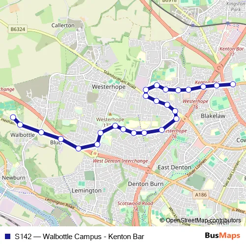 The first stop of the S142 bus route is Walbottle Academy and the last stop is Kenton Lane - Hazeldene Avenue. S142 (Walbottle Campus - Kenton Bar) is operational during on weekdays.