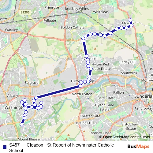 Click here to view the nearest S457 - Cleadon - St Robert of Newminster Catholic School bus stop.