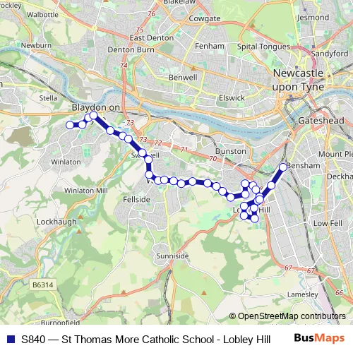 Click here to view the nearest S840 - St Thomas More Catholic School - Lobley Hill bus stop.