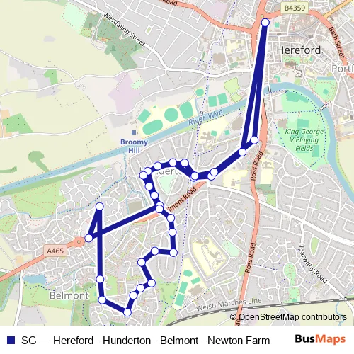 Click here to view the nearest SG - Hereford - Hunderton - Belmont - Newton Farm bus stop.
