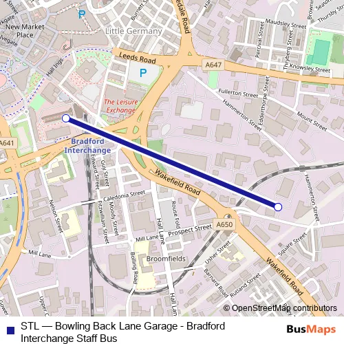 The first stop of the STL bus route is Bradford Depot and the last stop is Bradford Depot. STL (Bowling Back Lane Garage - Bradford Interchange Staff Bus) is operational during everyday.