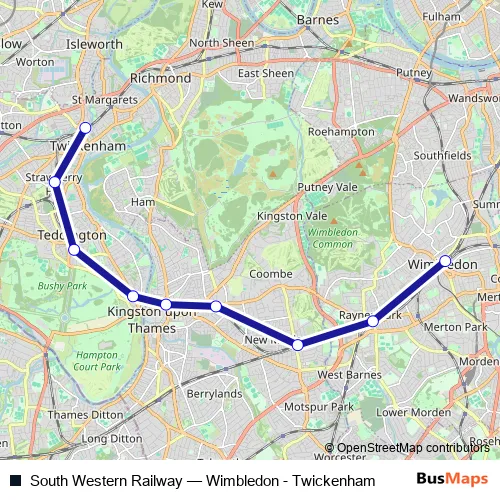Click here to view the nearest South Western Railway - Wimbledon - Twickenham bus stop.