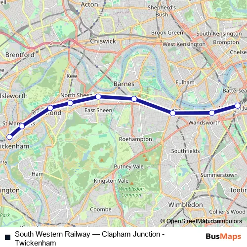 Click here to view the nearest South Western Railway - Clapham Junction - Twickenham bus stop.
