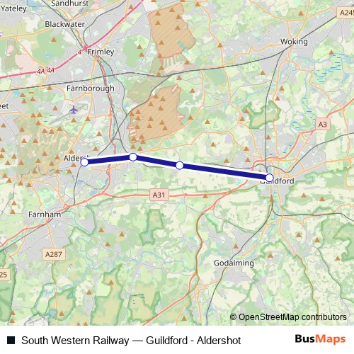 Click here to view the nearest South Western Railway - Guildford - Aldershot bus stop.