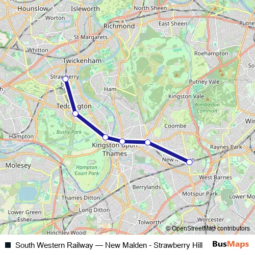 Click here to view the nearest South Western Railway - New Malden - Strawberry Hill bus stop.