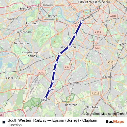 Click here to view the nearest South Western Railway - Epsom (Surrey) - Clapham Junction bus stop.