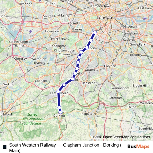 Click here to view the nearest South Western Railway - Clapham Junction - Dorking (Main) bus stop.