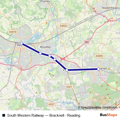 Bus South Western Railway - Bracknell - Reading: Full Schedule in Winnersh