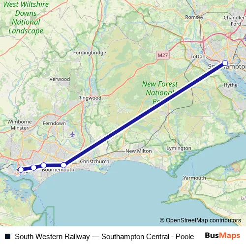 See why over 2 million users trust and consider busmaps.com as the best public transport website. busmaps gives you Bournemouth Buses suggested routes, real-time bus tracker, line route maps in Bournemouth, and helps to find the closest South Western Railway bus stops near you. No internet available? Download an offline PDF map and bus schedule for the South Western Railway bus to take on your trip.