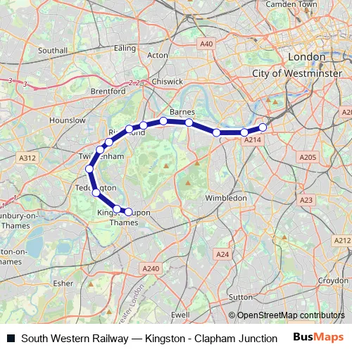 Click here to view the nearest South Western Railway - Kingston - Clapham Junction bus stop.