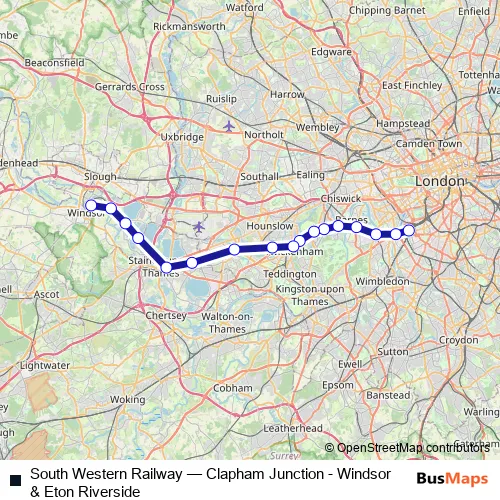 See why over 2 million users trust and consider busmaps.com as the best public transport website. busmaps gives you London Rail Services suggested routes, real-time bus tracker, line route maps in London, and helps to find the closest South Western Railway rail stops near you. No internet available? Download an offline PDF map and bus schedule for the South Western Railway rail to take on your trip.