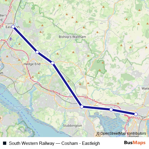 Click here to view the nearest South Western Railway - Cosham - Eastleigh rail stop.