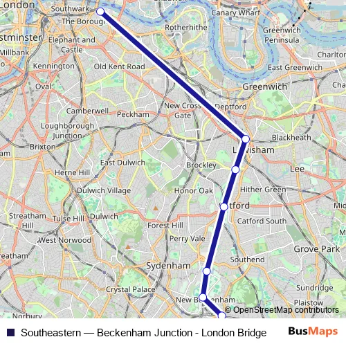 The first stop of the Southeastern rail route is Beckenham Junction and the last stop is London Bridge. Southeastern (Beckenham Junction - London Bridge) is operational during everyday.