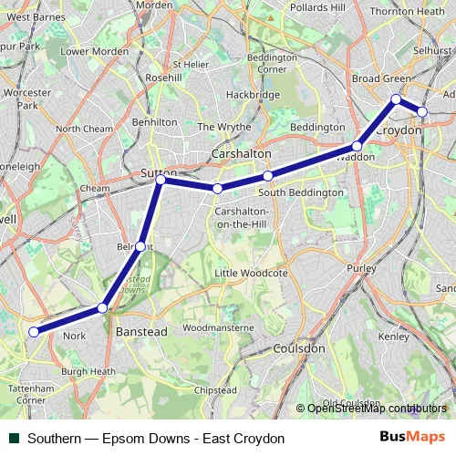 Click here to view the nearest Southern - Epsom Downs - East Croydon bus stop.