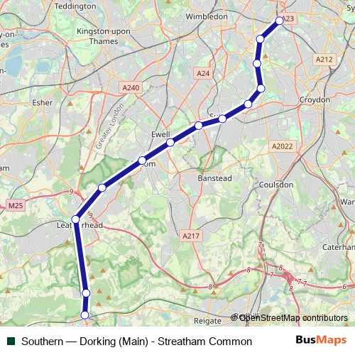 Click here to view the nearest Southern - Dorking (Main) - Streatham Common bus stop.