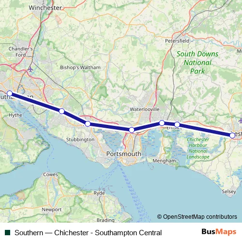 See why over 2 million users trust and consider busmaps.com as the best public transport website. busmaps gives you Southampton Rail Services suggested routes, real-time bus tracker, line route maps in Southampton, and helps to find the closest Southern rail stops near you. No internet available? Download an offline PDF map and bus schedule for the Southern rail to take on your trip.
