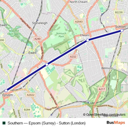 See why over 2 million users trust and consider busmaps.com as the best public transport website. busmaps gives you Sutton Rail Services suggested routes, real-time bus tracker, line route maps in Sutton, and helps to find the closest Southern rail stops near you. No internet available? Download an offline PDF map and bus schedule for the Southern rail to take on your trip.