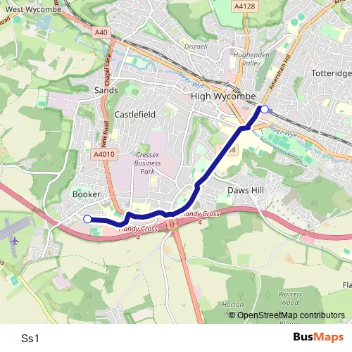 The first stop of the Ss1 bus route is Booker, Westwood and the last stop is High Wycombe, Crendon Street. Ss1 is operational during on weekdays.