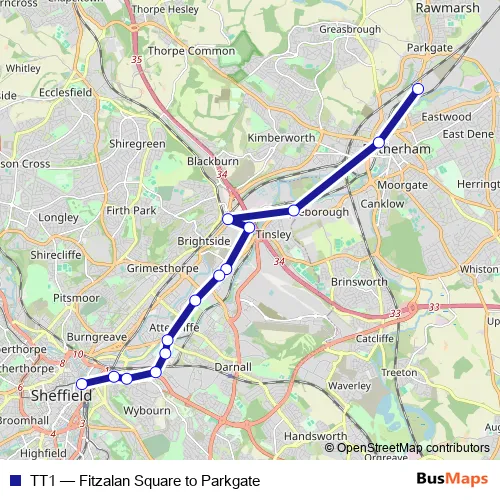 See why over 2 million users trust and consider busmaps.com as the best public transport website. busmaps gives you Sheffield Buses suggested routes, real-time bus tracker, line route maps in Sheffield, and helps to find the closest TT1 bus stops near you. No internet available? Download an offline PDF map and bus schedule for the TT1 bus to take on your trip.