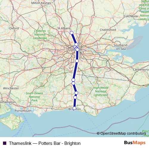 See why over 2 million users trust and consider busmaps.com as the best public transport website. busmaps gives you London Rail Services suggested routes, real-time bus tracker, line route maps in London, and helps to find the closest Thameslink rail stops near you. No internet available? Download an offline PDF map and bus schedule for the Thameslink rail to take on your trip.