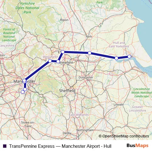 See why over 2 million users trust and consider busmaps.com as the best public transport website. busmaps gives you Leeds Rail Services suggested routes, real-time bus tracker, line route maps in Leeds, and helps to find the closest TransPennine Express rail stops near you. No internet available? Download an offline PDF map and bus schedule for the TransPennine Express rail to take on your trip.